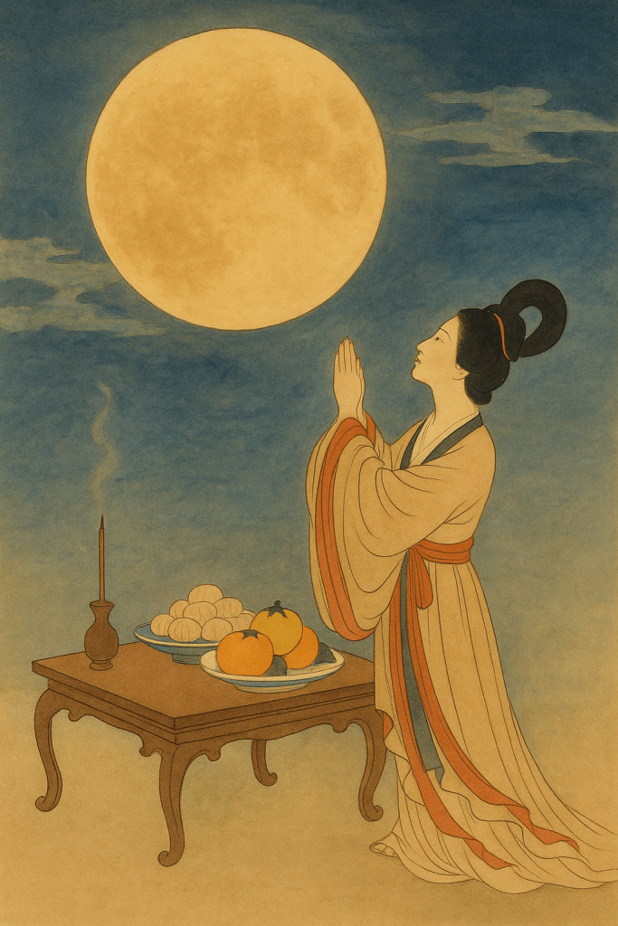 Today, the Mid-Autumn Festival has shed its religious function and become a cultural and emotional celebration. We still place mooncakes on the table, gaze at the moon, and tell the story of Chang’e, but we no longer perform acts of kneeling worship. What remains is a deep sense of aesthetic reverence—for nature, for family, for human connection.