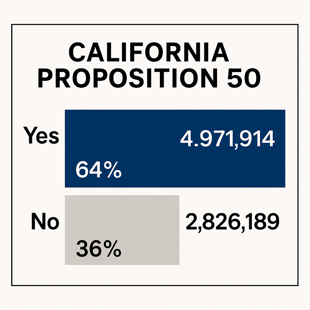 The passage of Proposition 50 is more than a state-level decision; it is a symbolic reflection of American democracy under strain.
