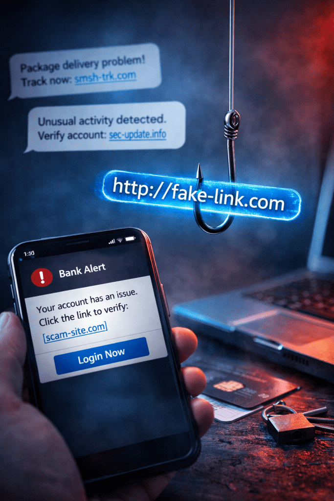 几乎每一个在美国生活的人,都收到过这样的短信:“你的包裹存在异常,请点击链接确认。”“你的账户有安全问题,需要立即验证。”“我们检测到可疑活动,请登录以下页面处理。”有时来自“银行”,有时来自“快递公司”,有时来自“客服中心”,号码看起来像真的,语言也并不粗糙。它不要求你转钱,也不威胁你坐牢,只是给你一个链接,让你“去处理一下”。很多人点过,也正是在这一刻,很多事情开始发生。